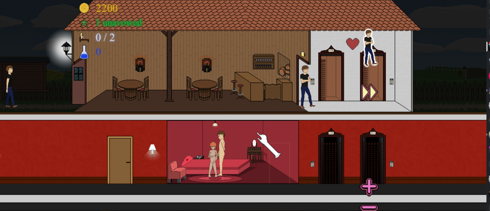 Назначьте своих девочек в рабочую комнату и при необходимости поменяйте их местами. Ваша девушка соответствует вашим предпочтениям клиентов? Если да, то чего вы ждете? Покажи ему ее комнату! Вам предстоит многое сделать. Понаблюдайте за своими девочками, хорошо ли они справляются со своей работой. Чем счастливее клиент, тем больше монет он оставит вам для улучшения вашего борделя. Кроме того, его молва необходима, чтобы привлечь больше себе подобных.
