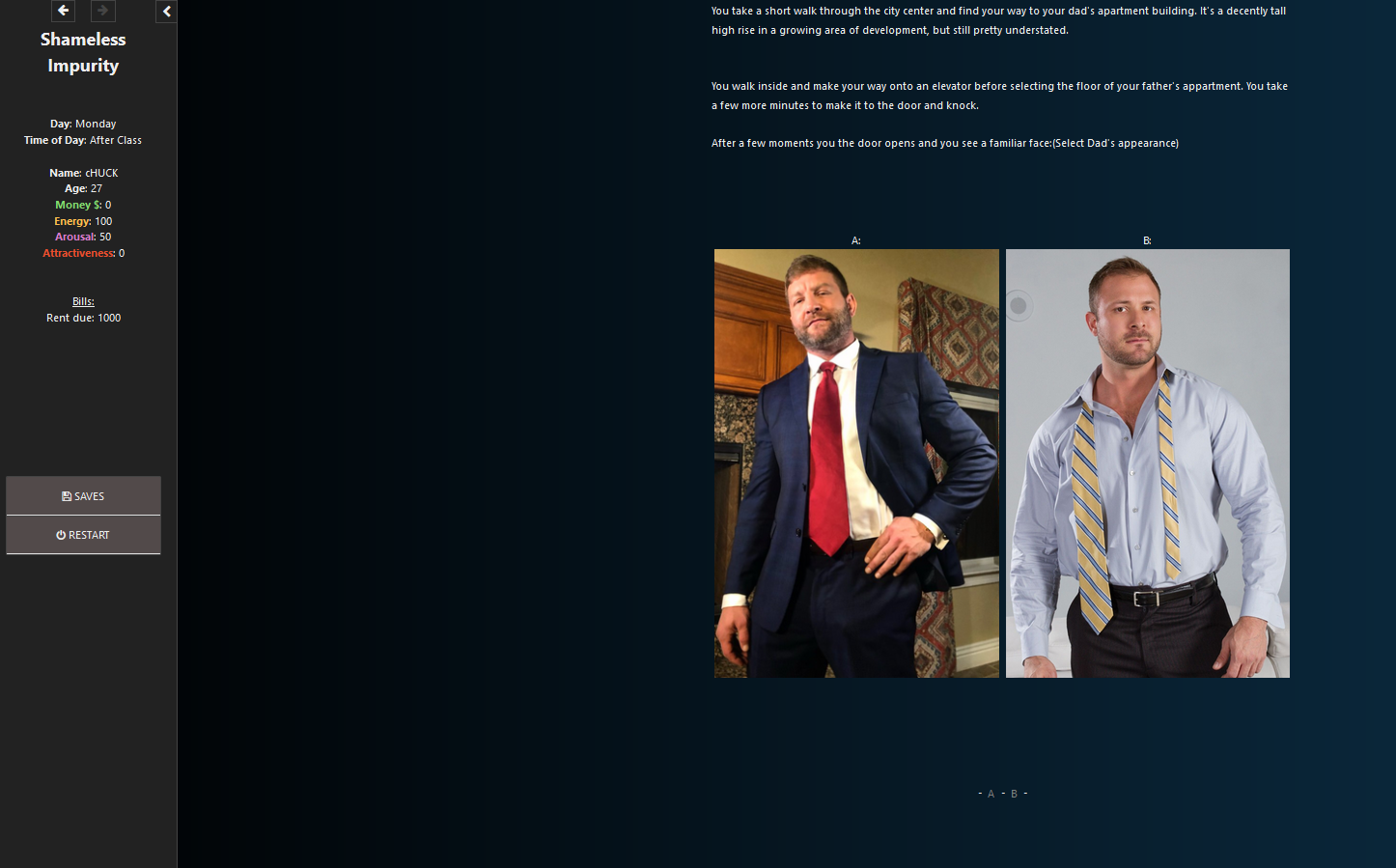 Полностью сфокусированная на м/м текстовая приключенческая игра без какого-либо «девчачьего» содержания. На данный момент это доказательство концепции с идеями, в основном спасенными из моей предыдущей работы над моим гей-римейком «Incubus Dreams»
